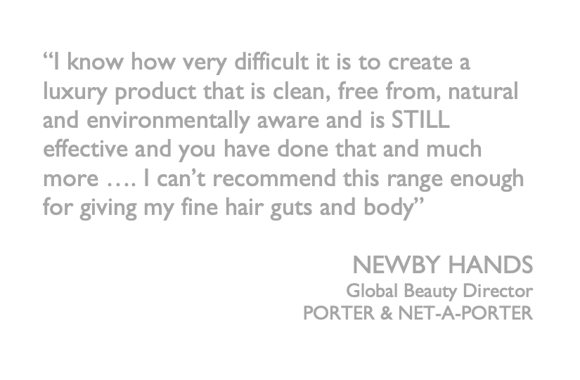 I started my own haircare range to create a truly healthy range of products. I banished all "Nasties" first- absolutely NO Silicone, Sodium Lauryl sulphate or Propylene glycol, Parabens and Synthetic polymers. Instead I sought out the finest chemists to help me create special formulas containing ethical and environmentally friendly natural and naturally derived ingredients. Chemical ingredients such as Silicone undermine and destroy our hairs natural ability to shine. They literally strip the hair shaft of all natural oils and then coat it in plastic-like materials. Not healthy at all! Take a look at the labels on your shampoo and consider what you are putting on your hair. As I always say "Healthy Scalp- Healthy Hair' Be kind to your hair -and yourself -today